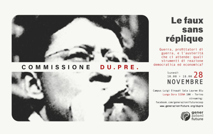 LE FAUX SANS RÉPLIQUE DUPRE - Commissione Dubbio e Precauzione Lunedì 28 novembre ore 10:00 Torino, Sala Lauree Blu, Campus Luigi Einaudi, Lungo Dora 100 SEGUI LA DIRETTA Guerra, profittatori di guerra, ed aumento del carovita: [...]